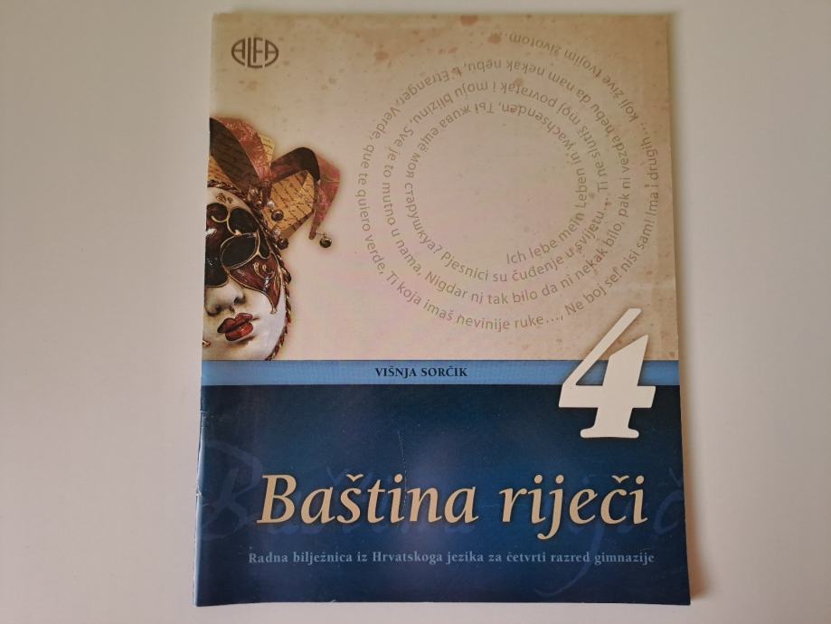 Prodajem novu, nekorištenu radnu bilježnicu Baština riječi 4 iz hrvatskog jezika za četvrti razred gimnazije.