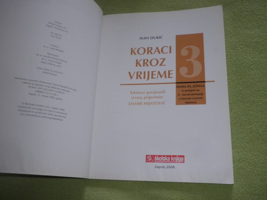 Radna bilježnica iz povijesti za 3. razred gimnazije s izborom izabranih tekstova