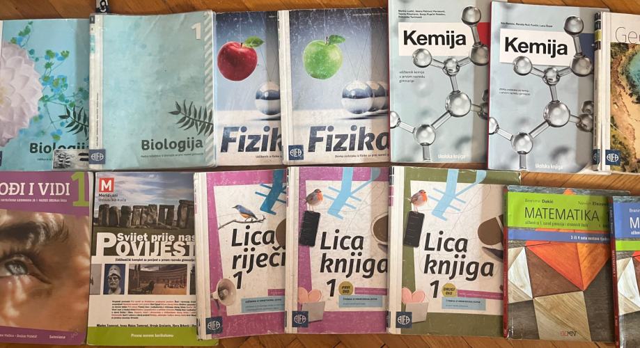 Prodaju se knjige za 1.razred Prirodoslovne gimnazije, sve osim Informatike,Engleskog i Latinskog.