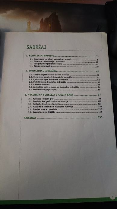 Matematika 2 u kompletu (prvo i drugo polugodište). Knjiga za prvo polugodište je u vrlo dobrom stanju ali knjiga za drugo polugodište ima fleku od vode koja mi se prosula tokom učenja. Sadržaj knjige se inače vidi i lako se pročita, jedino što je knjiga namreškana.