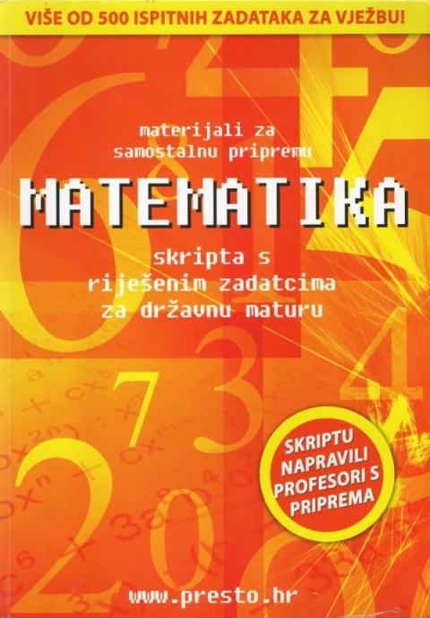 "MATEMATIKA" - Skripta s riješenim zadacima za državnu maturu / Materijali za samostalnu pripremu drž. mature / Autor: "PRESTO" Zagreb.