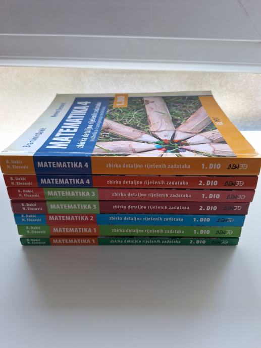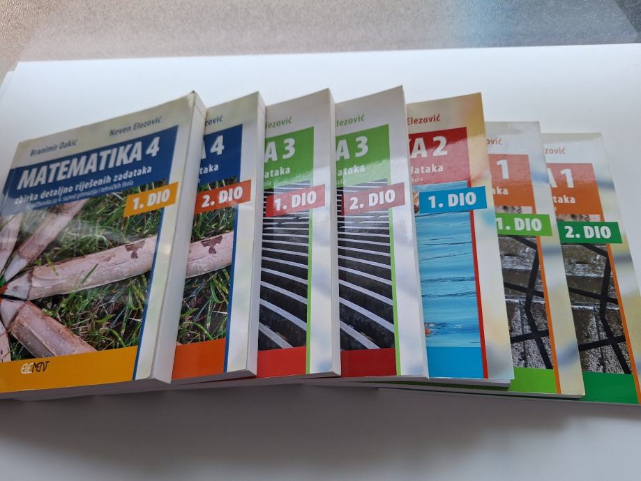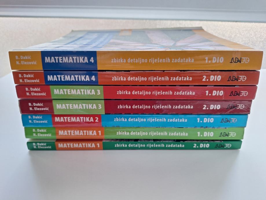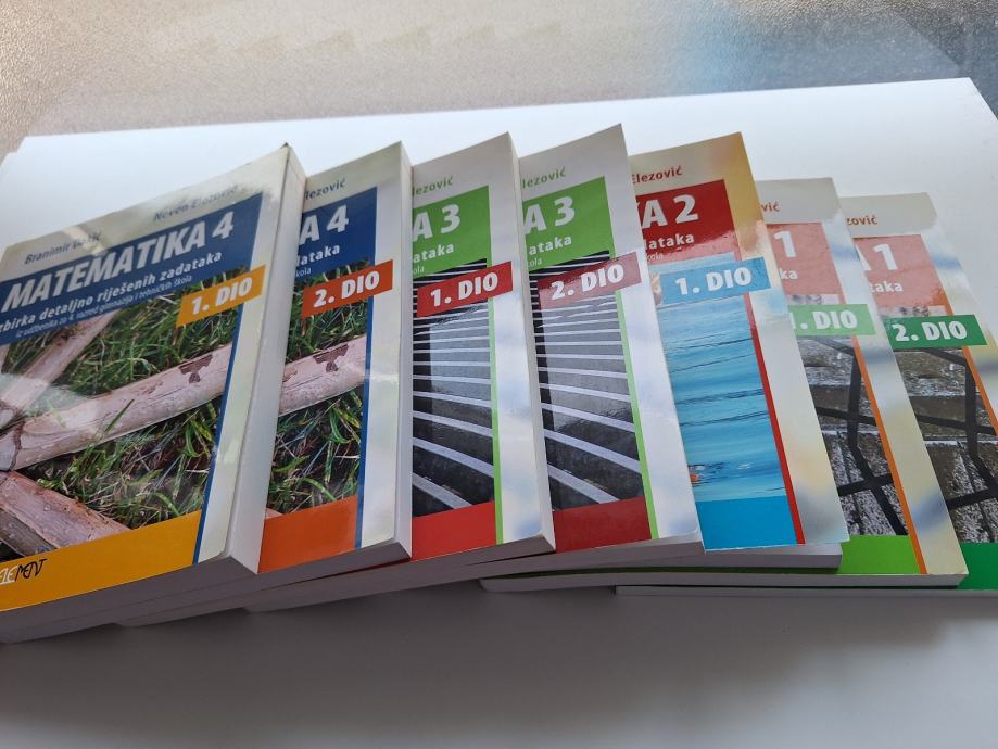 Prodajem komplet zbirki detaljno riješenih zadataka iz matematike za sva četiti razreda gimnazije i tehničke škole (fali samo zbirka za drugo polugodište drugog razreda). Zbirke su očuvane