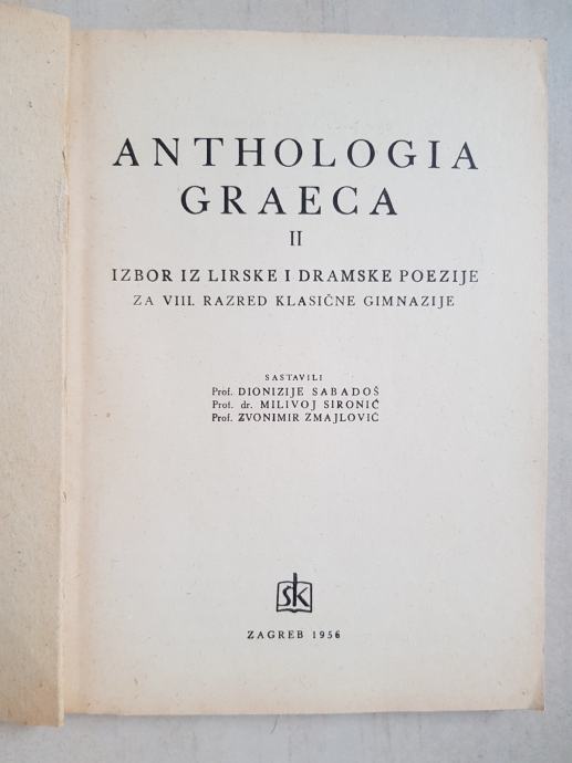 Sabadoš Zironić Zmajlović: Anthologia Graeca II