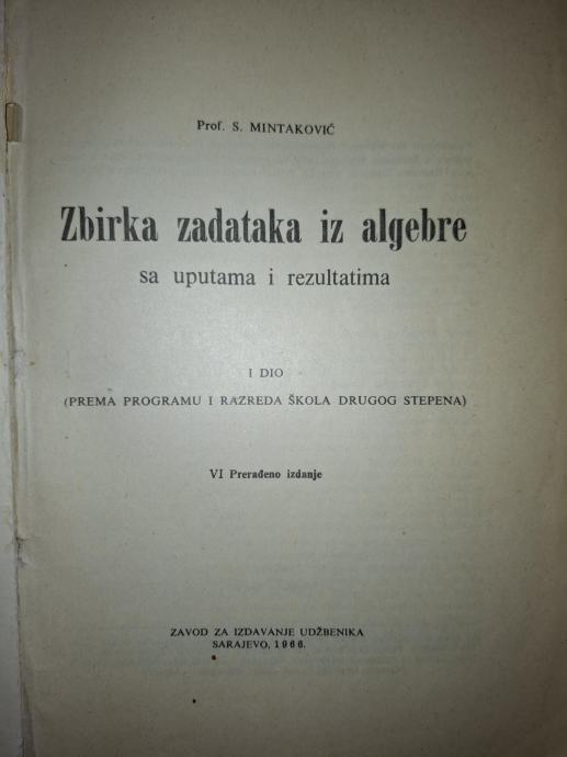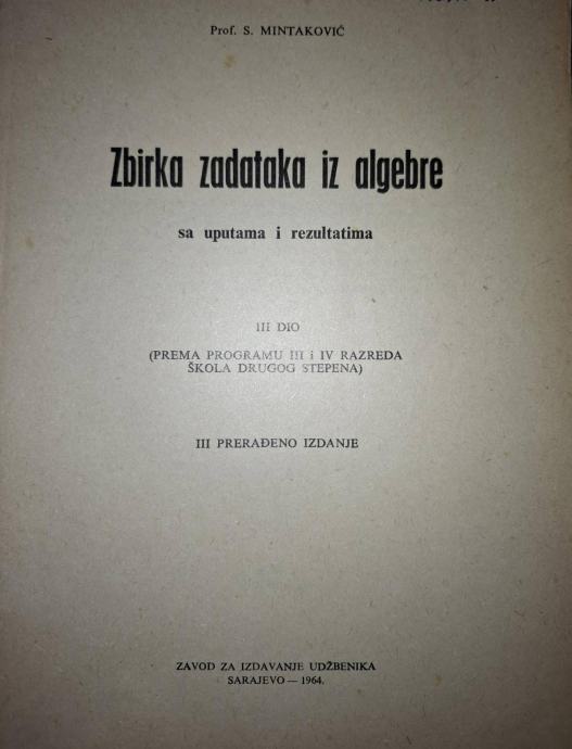 9. Stjepan Mintaković: Zbirka zadataka iz algebre III dio, Zavod za izdavanje udžbenika, Sarajevo, 1964.