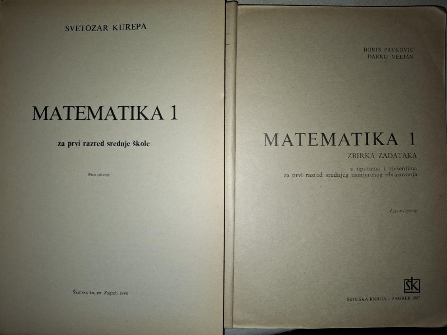 2. Svetozar Kurepa: Matematika 1 za prvi razred usmjerenog obrazovanja, Školska knjiga - Zagreb, 1988.