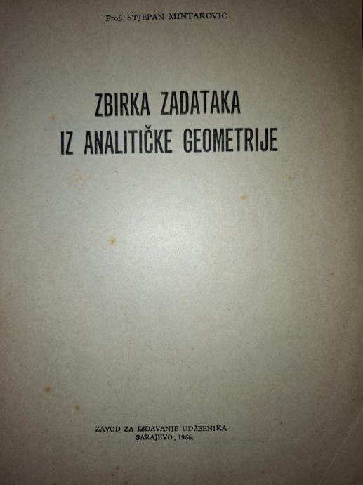 8. Stjepan Mintaković: Zbirka zadataka iz analitičke geometrije, Zavod za izdavanje udžbenika, Sarajevo, 1966.
