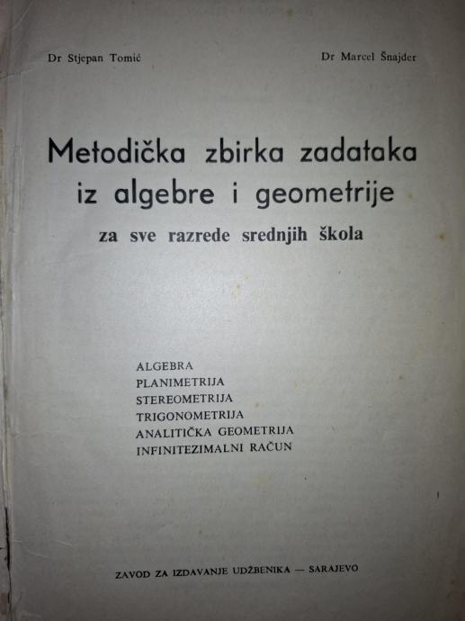 10. Marcel Šnajder, Stjepan Tomić: Metodička zbirka zadataka iz matematike, Zavod za izdavanje udžbenika, Sarajevo, 1966.