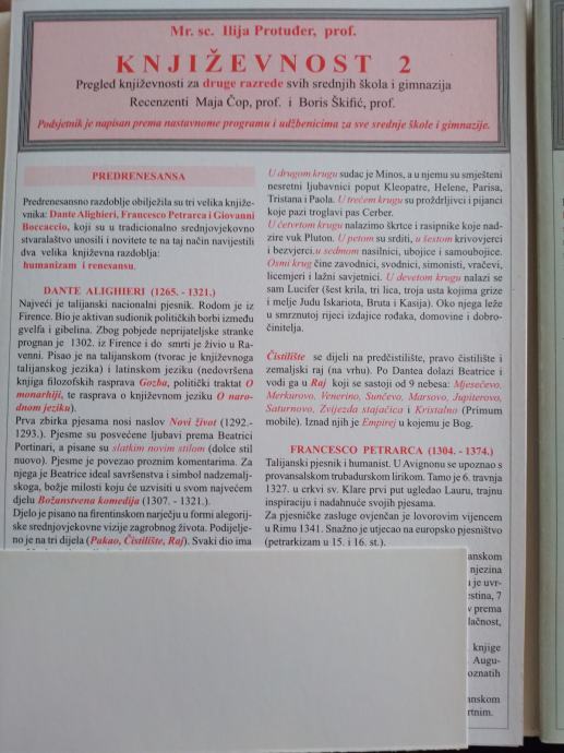 SREDNJOŠKOLSKA KNJIŽEVNOST za 1, 2, 3, i 4. raz.