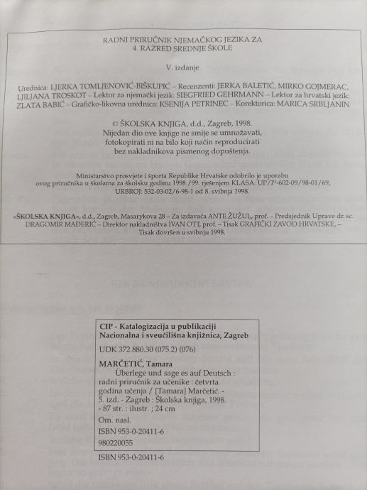 Radni priručnik za njemački 4. god. učenja