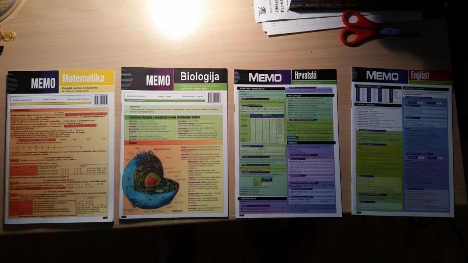 Prodajem i MEMO (matematika, biologija, hrvatski, english) svaki po 5kn :)