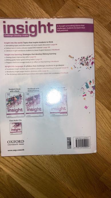Insight intermediate student’s book with e-book, udžbenik iz engleskog za 1. i 2. razred gimnazije od Oxforda. Potpuno očuvan i u odličnom stanju.