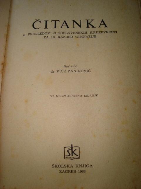 Zaninović: Čitanka s pregledom YU Književnosti za 3 r. gimnazije