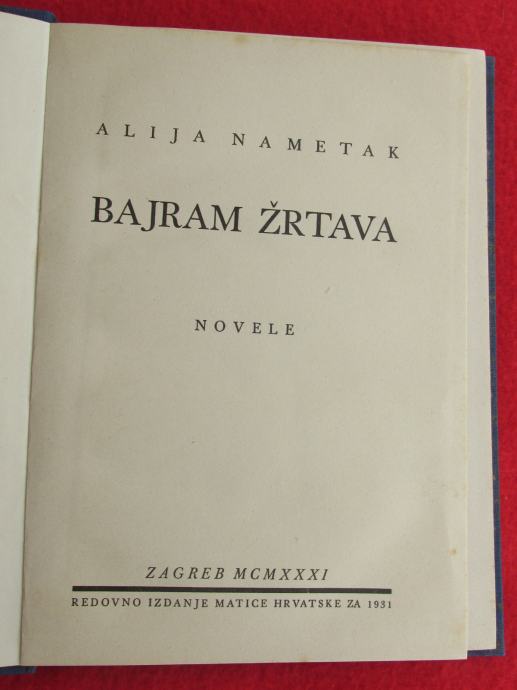 ALIJA NAMETAK - BAJRAM ŽRTAVA, novele, 1931.