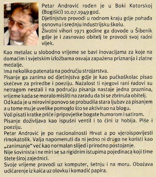 Zbirka kratkih priča i pripovijedaka bogatih humorom u kojima autor ironično komentira aktualne političke situacije, probleme malog čovjeka, suvremenog društva i vremena. Tematski raznolike, od piščeva rodnog kraja i djetinjstva do svakodnevnih sitnica, svaka priča nosi u sebi dozu humane distance i humora.