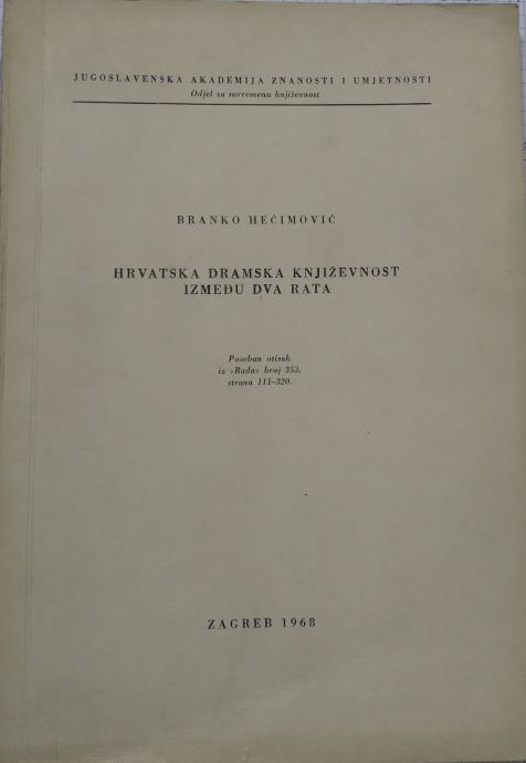 Branko Hećimović - Hrvatska dramska književnost između dva rata