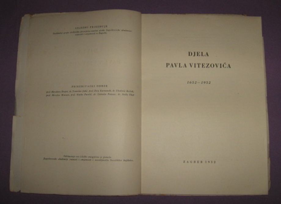Djela Pavla Vitezovića, Zagreb, 1952. (P)