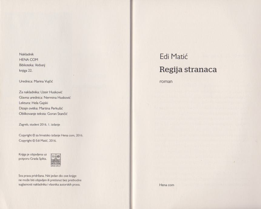 Edi Matić: Regija stranaca, Hena com, Zagreb 2016.