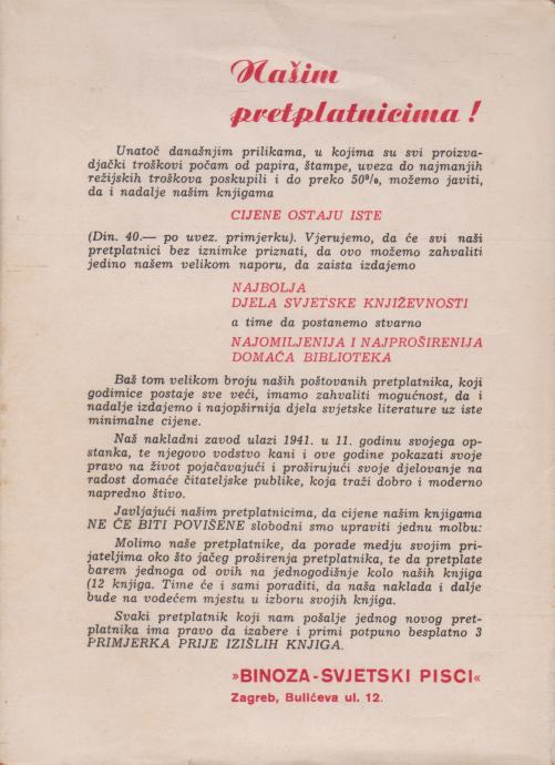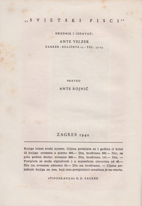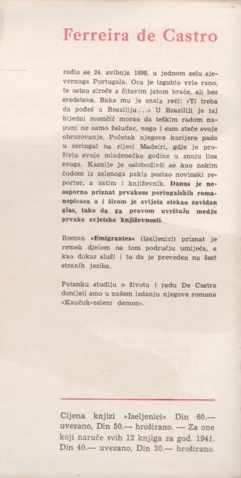 Ferreira de Castro: Iseljenici, Binoza, Zagreb 1940.