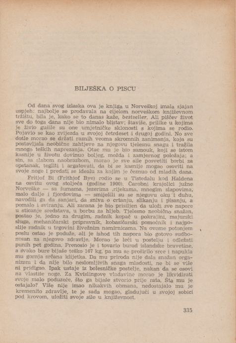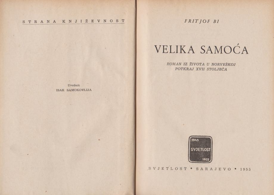 Fritjof Bi (Fritjof Bye): Velika samoća, Svjetlost, Sarajevo 1955.