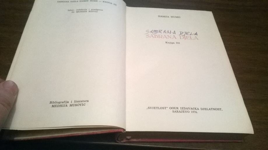 HAMZA HUMO SABRANA DJELA III SVJETLOST SARAJEVO 1976.