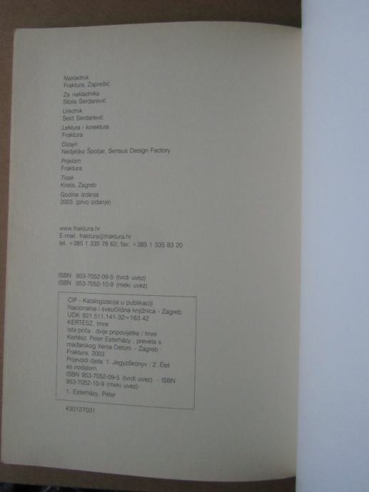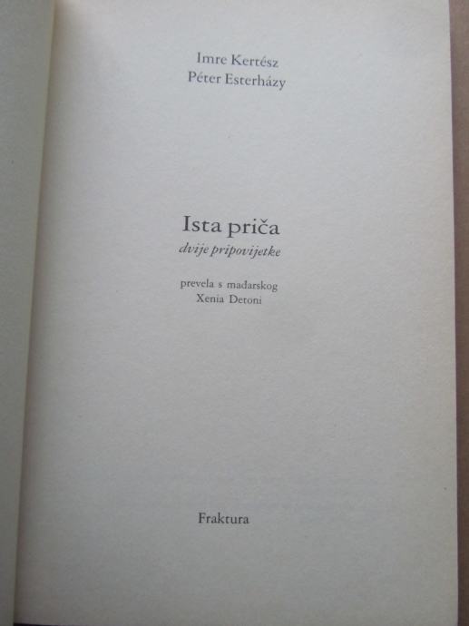 Imre Kertesz – Peter Esterhazy – Ista priča, dvije pripovijetke (ZZ31)