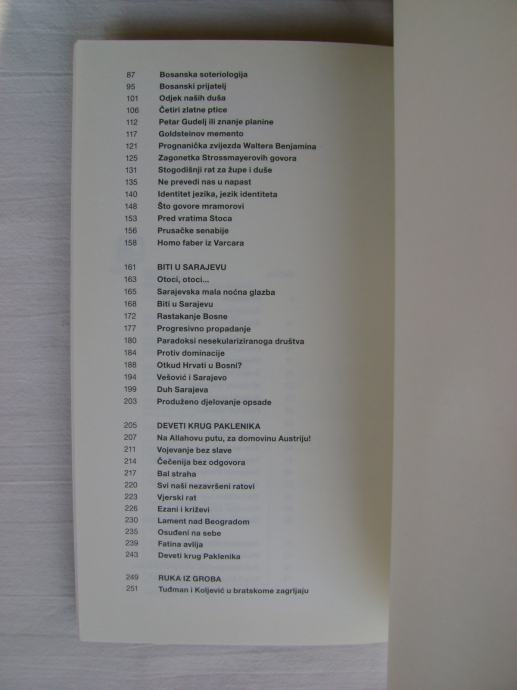 "Na granici književnosti i publicistike, fikcije i dokumentarnosti, autor ispisuje vlastitu sliku tragične sudbine Bosne i njezinih stanovnika. Pišući neke eseje puno prije rata u Bosni i Hercegovini, neke tijekom, a neke nakon rata, autor dirljivo i precizno donosi prikaz političke, društvene i kulturne situacije u Bosni, ističući dostojanstvo bosanskog čovjeka koje ostaje bez obzira na okrutnost njegove sudbine."