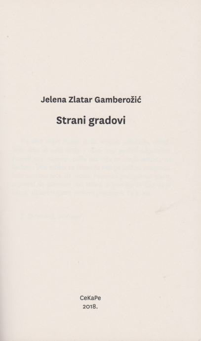 Jelena Zlatar Gamberožić: Strani gradovi, CeKaPe, Zagreb 2018.