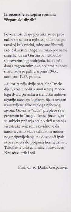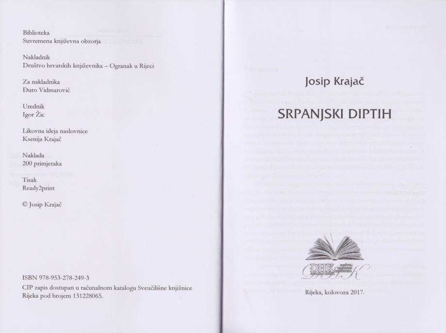 Josip Krajač: Srpanjski diptih, Društvo hrvatskih književnika - ogranak Rijeka, Rijeka 2017.