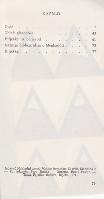 Kalidasa: Oblak glasonoša, Matica Hrvatska, Zagreb 1971.