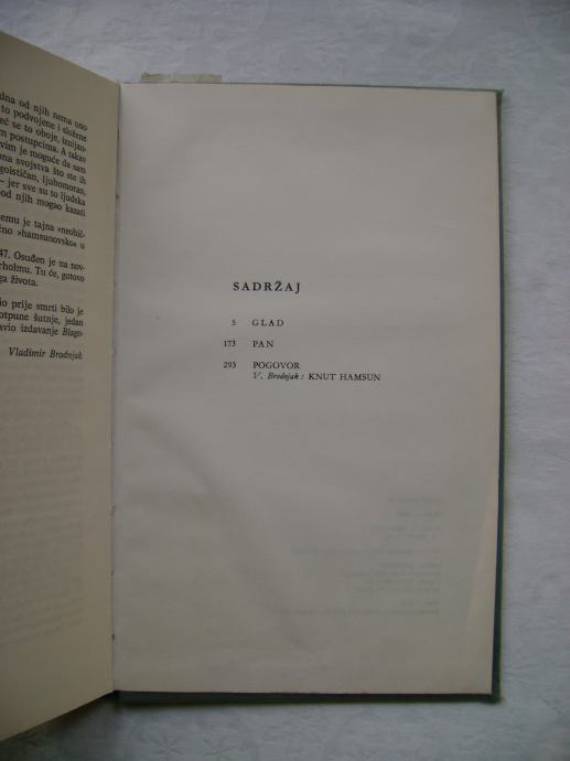 Knut Hamsun - Glad / Pan - izdavač IKP Naprijed, Zagreb 1975. godine, 14 x 23 cm, tvrdi uvez, 302 stranice.