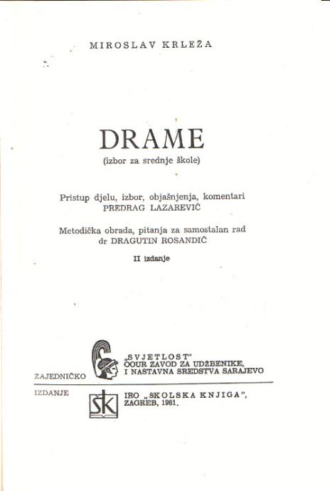 Krleža, Miroslav - Drame : izbor za srednje škole