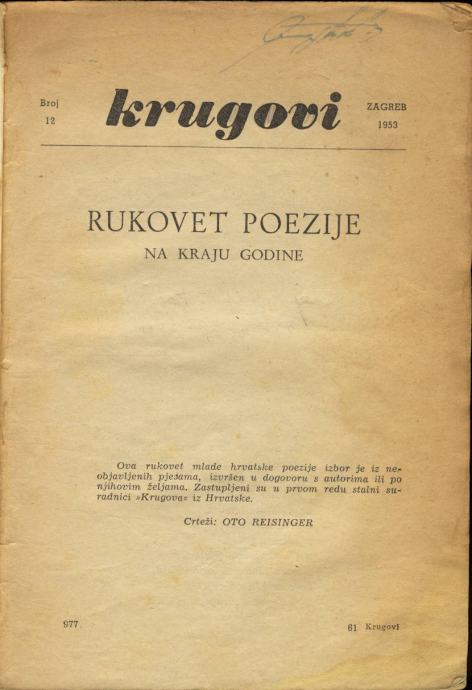 Krugovi 12 1953 Poslijeratna hrvatska mlada lirika Crtež Oto Reisinger