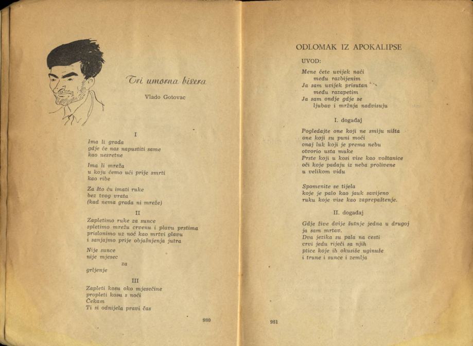 Rukovet mlade hrvatske poezije, izbor neobjavljenih pjesama izvršen u dogovoru s autorima ili po njihovim željama. Sve kariakture izradio oto Reisinger.