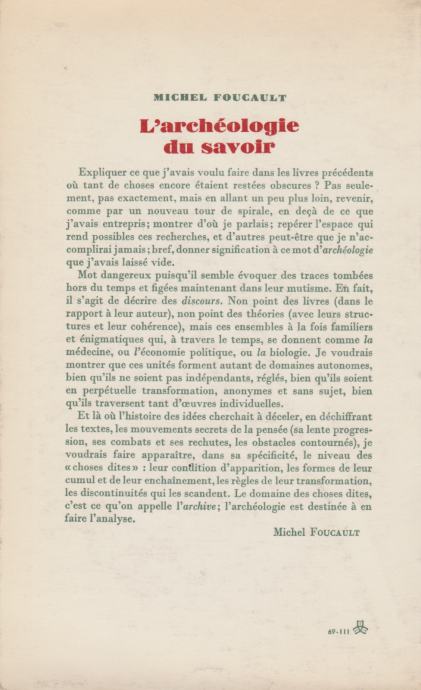 Michel Foucault: L'archéologie du savoir, Gallimard, Paris 1969.