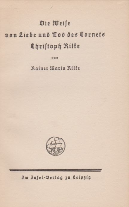 Rainer Maria Rilke: Die Weise von Liebe und Tod des Cornets Christoph Rilke, Insel-Verlag, Leipzig 1930.