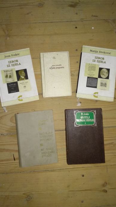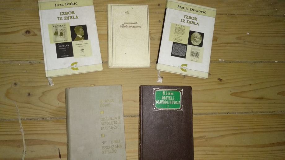 Prodajem set od pet knjiga (NARCIS JENKO : OBITELJ VOJVODE HRVOJA, IZBOR IZ DIJELA Matija Divković i Joza Ivakić, Oton Zupančić Čaša opojnosti i Branko Čopić Doživljaji Nikole Bursaća, ne tuguj bronzana stražo). Cijena za set od 5 knjiga 50 kn. Ako želite neku knjigu pojedinačno onda je 25 kn komad! Pogledajte moje ostale oglase ako Vas zanimaju knjige!