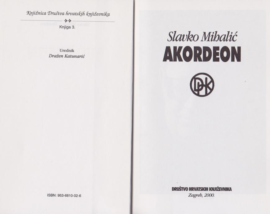 Slavko Mihalić: Akordeon, Društvo hrvatskih književnika, Zagreb 2000.