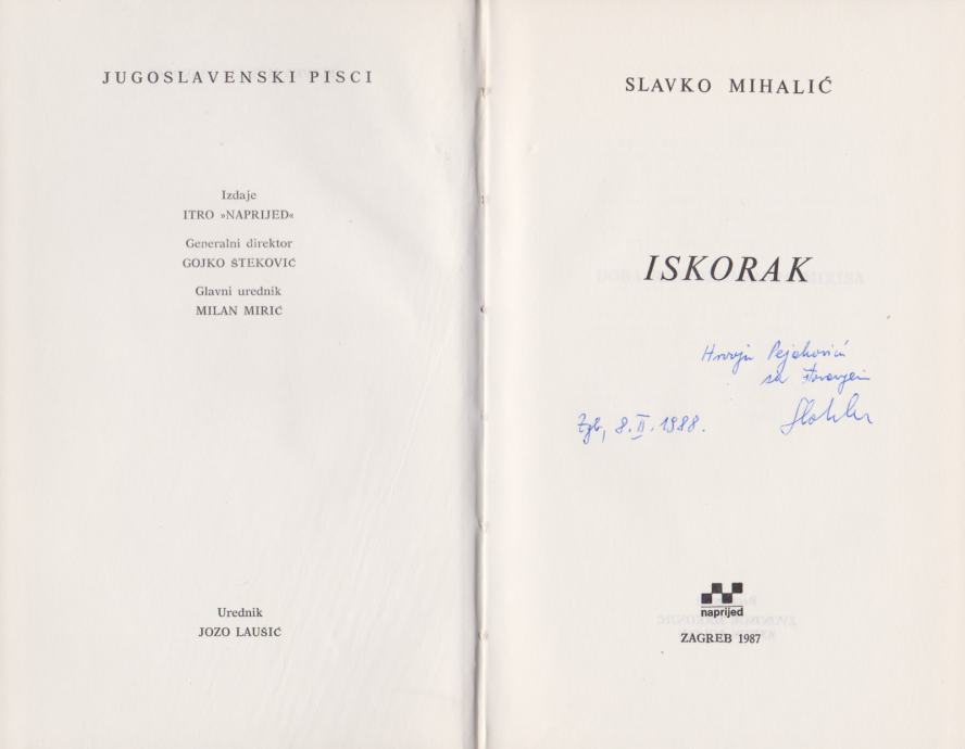 Slavko Mihalić: Iskorak, Naprijed, Zagreb 1987.