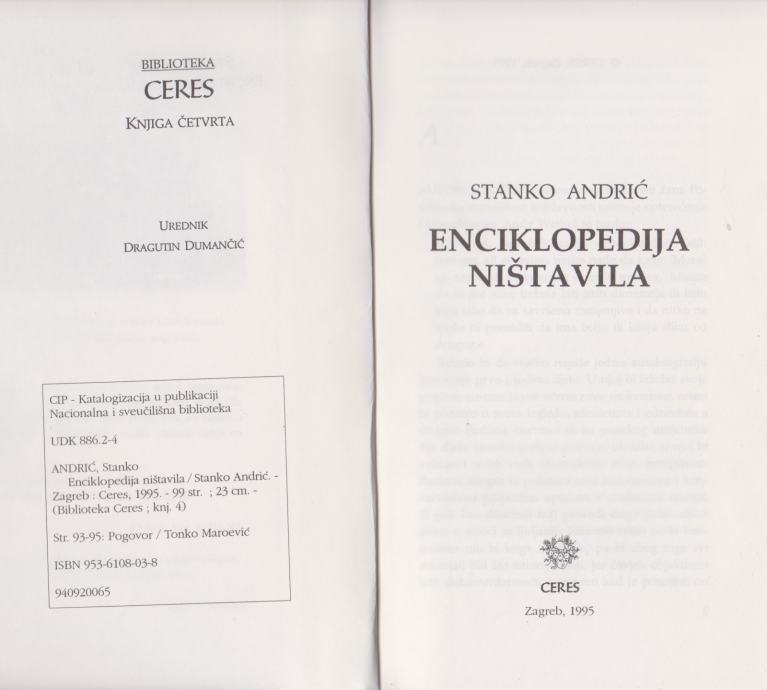 Stanko Andrić: Enciklopedija ništavila, Ceres, Zagreb 1995.