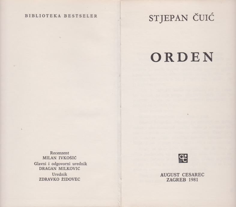 Stjepan Čuić: Orden, August Cesarec, Zagreb 1981.