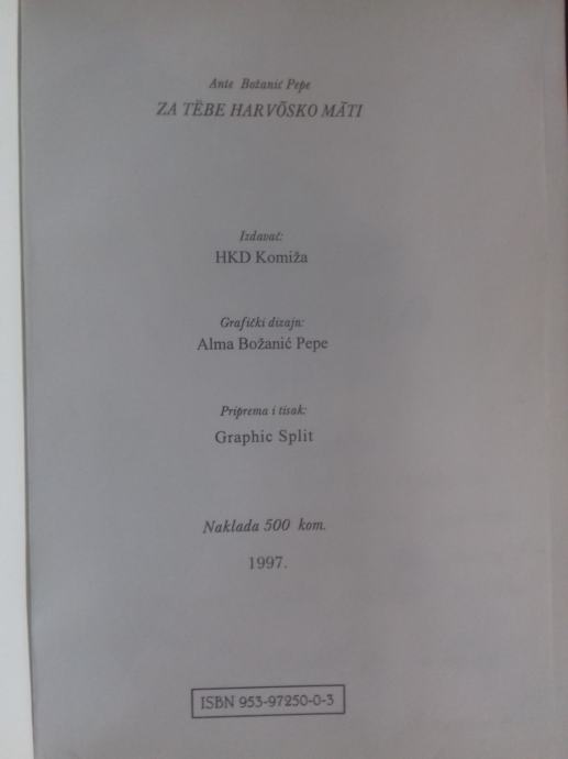 ZA TEBE HARVOSKO MATI, ANTE BOŽANIĆ - PEPE, HKD, KOMIŽA, 1997