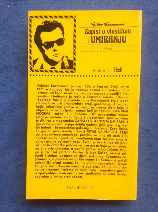 vojislav kuzmanović ZAPISI O VLASTITOM UMIRANJU, ZNANJE ZAGREB 1979