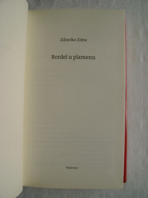 Zdravko Zima - Bordel u plamenu ; eseji - izdavač Fraktura Zaaprešić, 2009. godine, 13 x 21 cm, tvrdi uvez i papirnati omot, 278 stranica.