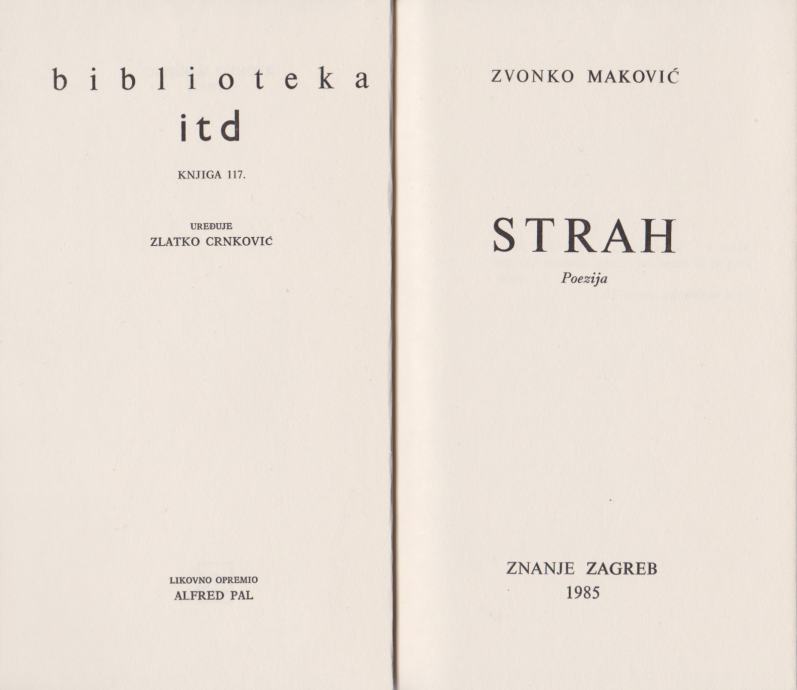 Zvonko Maković: Strah, Znanje, Zagreb 1985.