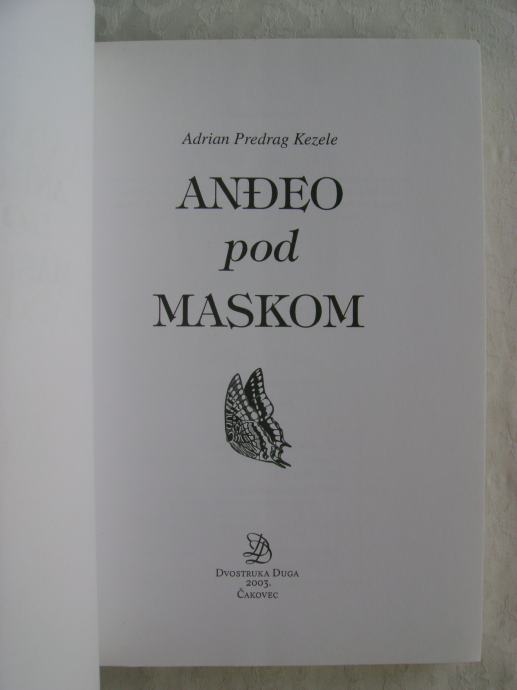 Adrian Predrag Kezele - Anđeo pod maskom - 2. izdanje, izdavač Dvostruka Duga, Čakovec 2003. godine, 15 x 21 cm, meki uvez sa preklopom, 206 stranica, ilustrirala Ivanka Muršić, naklada 500 primjeraka.