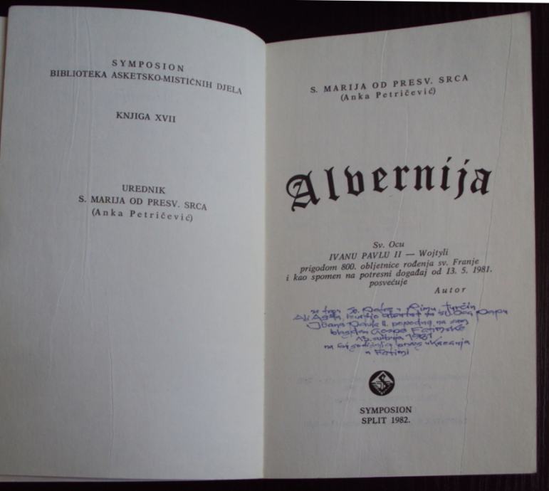 ALVERNIJA Anka Petričević Svetom Ocu Ivanu Pavlu II Posveta autorice