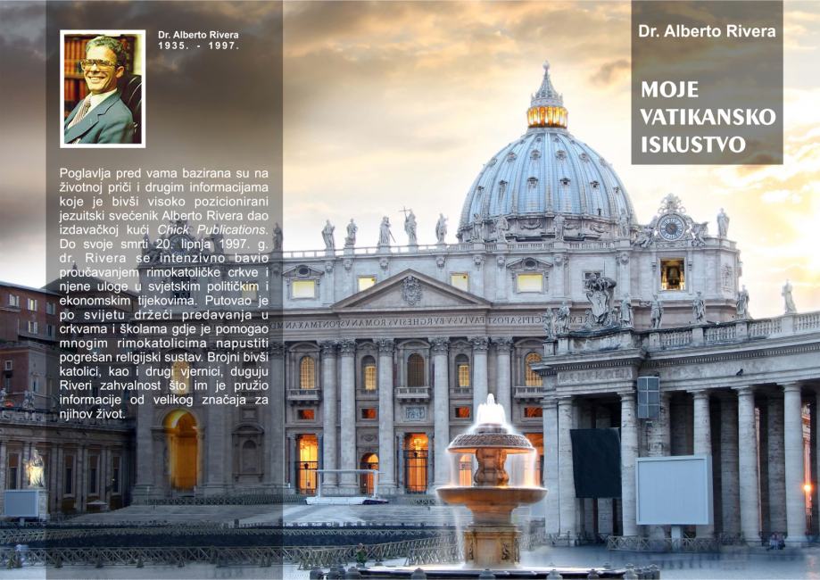 Pred vama je nevjerovatna priča o bivšem jezuitskom(Isusovcu) svečeniku i njegovom obraćenju. Dr Alberto R. Rivera je morao ostati na adresi sa identifikacijske karte dok je čekao odluku crkvenog suda u svom slučaju 1967. godine,nešto prije svog istupanja iz rimokatoličke crkve. Ispod su neke od posljednjih slika Dr Rivere,slikane kada je bio direktor škole za svečenike u San Lorencu, u Španjolskoj.Visoko rangirani jezuitski svečenik Alberto Rivera dao je sve informacije izdavačkoj kući Chick Publi cations. Do svoje smrti 20.lipnja 1997, Dr Rivera intenzivno je istraživao rimokatoličku crkvu i njenu ulogu u svijetskim političkim i ekonomskim događajima. Putovao je po svijetu držeći predavanja u crkvama i školama gdje je pomogao mnogim rimokatolicima da napuste pogrešan religijski sistem. Mnogi bivši katolici, i drugi ljudi, duguju Riveri što su dobili informacije od značaja za svoj život.