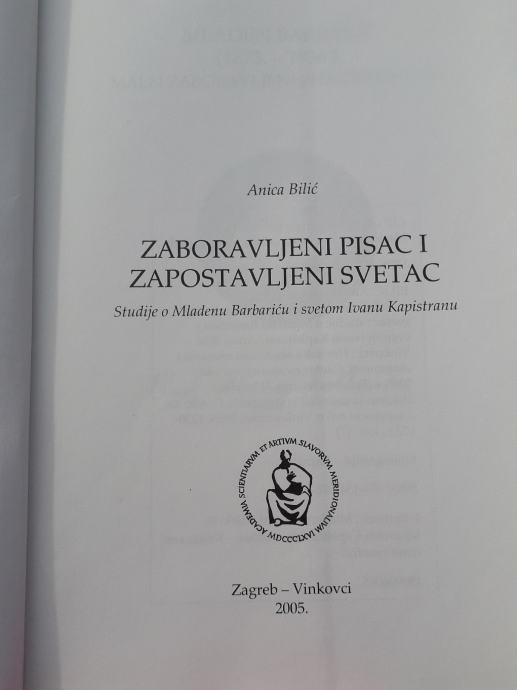 ZABORAVLJENI PISAC I ZAPOSTAVLJENI SVETAC, HRV.AKADEMIJA ZNANOSTI I UMJETNOSTI, CENTAR ZA ZNANSTVENI RAD ZAGREB VINKOVCI 2005.