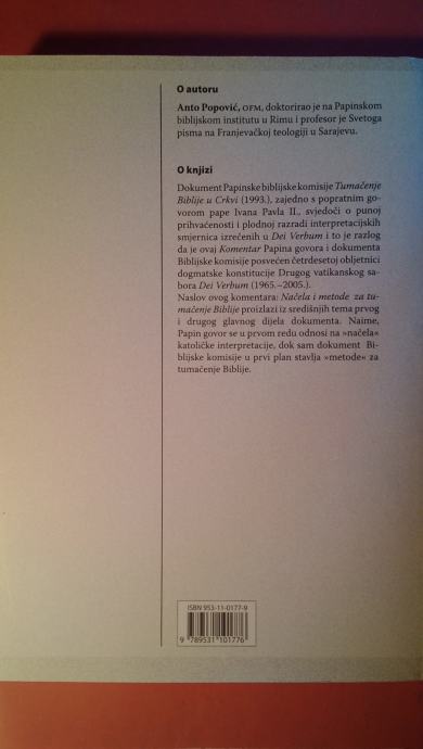Anto Popović, Načela i metode za tumačenje Biblije : Komentar Papina govora i dokumenta biblijske komisije "Tumačenje Biblije u Crkvi", Kršćanska sadašnjost, Zagreb, 2005