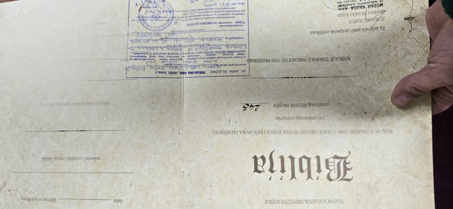 Uz knjigu dolazi potpisani certifikat ovjeren kod javnoga bilježnika i stalak.